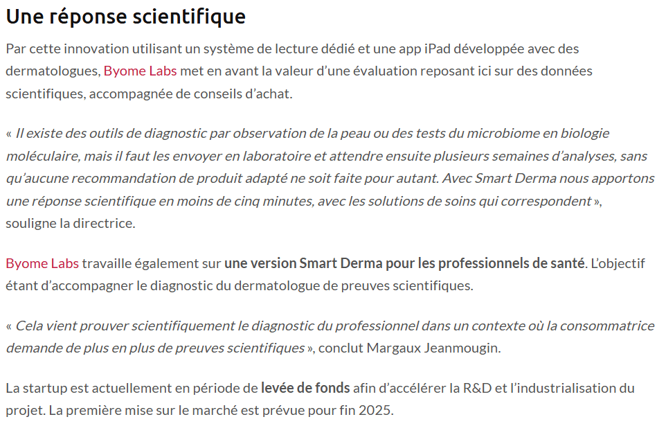 Un article très complet sur BYOME DERMA et notre récente levée de fond.